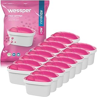 Wessper® AQUAMAX MG+ Magnésium Mineralizer Cartouche Filtrante pour Carafe - Compatible avec BRITA Maxtra, AmazonBasics, FilterLogic, Max Strength - Pack 20