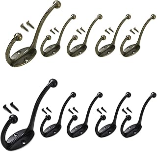 yyuezhi Rétro Porte Manteau Mural Noir Double Crochet Crochet en Alliage rétro Vintage pour Bain Cuisine Porte-Manteau Patère Porte Manteau Murale Crochet de Manteau Rétro Avec Vis 10 Pièces