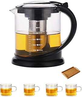 TEAHOM Théière 1,L Théière en Verre résistant à la Chaleur avec Filtre Infuseur Amovible,Pots à thé en Vrac