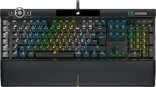 Corsair K100 RGB Clavier Gaming Optique-Mécanique (Switchs Optiques-Mécaniques CORSAIR OPX: Ultrarapides et Linéaire, Éclairage RGB, Repose-Poignet Cuir, intégration Elgato Stream Deck, AZERTY) Noir