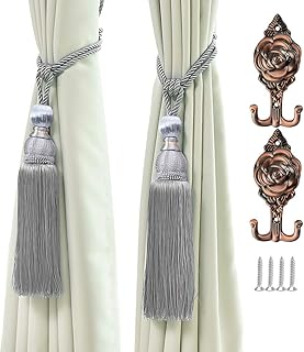 INHEMI 1 Paire Rideau Embrasse Rubans,d'embrasses de Rideau à Pompons,Rideau Corde Retenue avec Crochets De Retenue de Rideau en Bronze Vintage