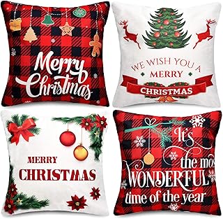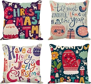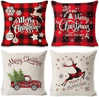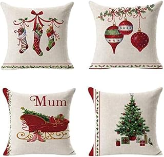 Sunshine smile 4pcs Christmas Pillow Covers,Coussin taie d'oreiller noël,Housse de Coussin Noel,Housse de Coussin Decoration,Merry Christmas Decoration Noel Voitureré De Noël Taie d'oreiller (C)