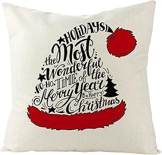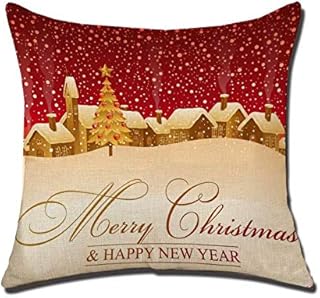 ZYUEER Merry Christmas Housse de Coussin Decoration Deco Coussins canape Bureau Décoratif taie d'oreiller 45 * 45cm Noël Thème 1 (Rouge H)