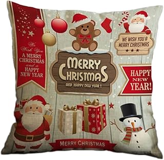 ZYUEER Merry Christmas Housse de Coussin Decoration Deco Coussins canape Bureau Décoratif taie d'oreiller 45 * 45cm Noël Thème 1 (Beige D)