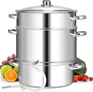 DREAMADE Extracteur de Jus à Vapeur, 11L d’extracteur de jus avec Trois couches et Couvercle en Verre et Tuyau, Acier Inoxydable de Steamer pour Extraire Jus des Fruits et des Légumes