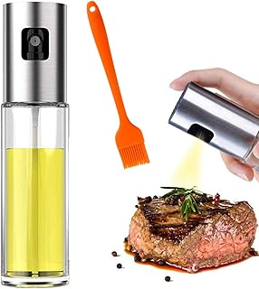 Wqeew Huile Pulvérisateur Distributeur,Vinaigre Pulvérisateur,Dressing Spray avec Brosse Portable,Griller D 'ol Ive Bouteille en Verre 100ml,Premium Acier Inoxydable 304,pour Cuisine Cuisinière Salade