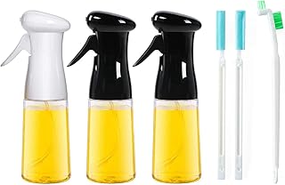 Macllar 3 Paquet Pulvérisateur d'huile d'olive, 210 ML, Animal de Compagnie de qualité Alimentaire, Flacon pulvérisateur d'huile de vinaigre pour la Cuisine, Le Barbecue, avec brosses de Nettoyage