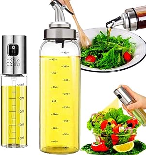 Vaporisateur Huile Vinaigre Cuisine Pulvérisateur Huile d'olive de Bouteille en Acier/Verre pour Cuisine/Barbecue/Salade/Cuisson au Pain/Cuisson Quotidienne - 500 ml