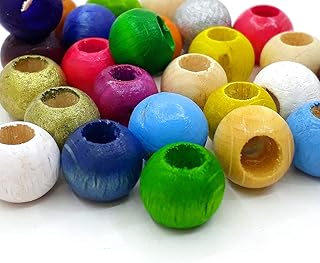 Lot de 200 perles en bois de 8 mm - Grand trou de 4 mm - Perles en bois rondes - Couleurs mélangées - Pour loisirs créatifs et fabrication de bijoux