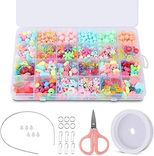 BROTOU Lot de 24 types de perles rondes en résine acrylique - Pour bracelets, bijoux, loisirs créatifs pour enfants et filles - Cadeau DIY