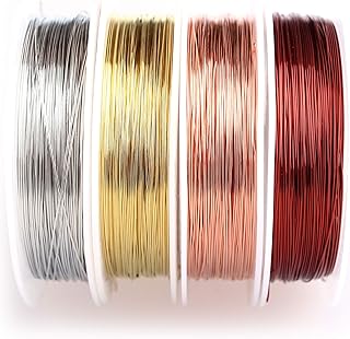 Creacraft Assortiment de 4 Bobines Fil de Cuivre Métallique 0,4mm, 20m/Bobin Couleurs Melangees - DIY Bijoux Loisirs Creatifs