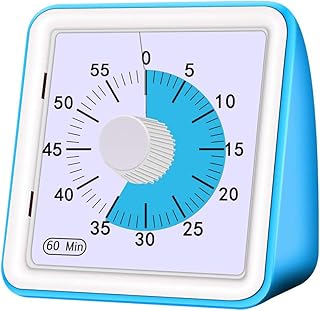 Minuteur analogique visuel 60 minutes, compte à rebours sans bruit, outil de gestion du temps pour enfants et adultes, minuteur d'examen, minuteur de cuisine,réunions, bureau, bureau, réunion, bleu