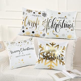 SPECOOL Lot de 4 Taie d'oreiller de noël 45x45cm Housses de Coussin Decoration Canapé avec Fermeture à glissière Invisible pour Lit Voiture De La Maison Canapé Salon Chambre Canapé Lavable