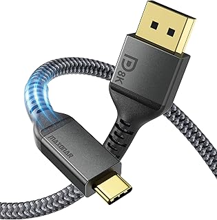 Câble USB C vers DisplayPort Maxonar 8K @ 60Hz 4K @ 60Hz / 144Hz / 120Hz 5K @ 60Hz 2K @ 240Hz Câble Thunderbolt 3 vers DisplayPort Type C Adaptateur DP 1.4 pour MacBook Pro,Dell XPS 2M / 6.6Ft