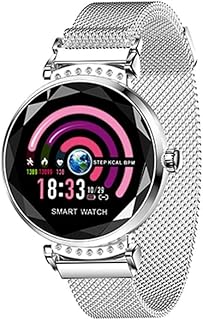 Montre Bluetooth H2,Montre Dame,Montre pour Sport Traqueur,Montre Connecté Femme,Bracelet de Fitness,Montre éTanche,ConnectéE Bracelet PodomèTre,FréQuence Cardiaque,Intelligente,Argent