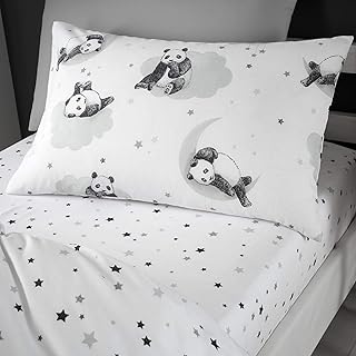Happy Linen Company Drap-Housse - Enfant - Motif Panda Mignon - Blanc uni - lit 1 Personne