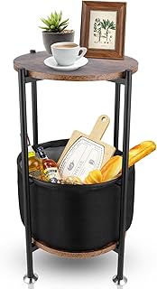 Cocoarm Table d'appoint en Fer Table Basse de Salon Table à café Table Bout de canapé Table de canapé Ronde Table de Chevet Table de thé Fin de Table Table Basse de canapé, avec Rangement en Tissu